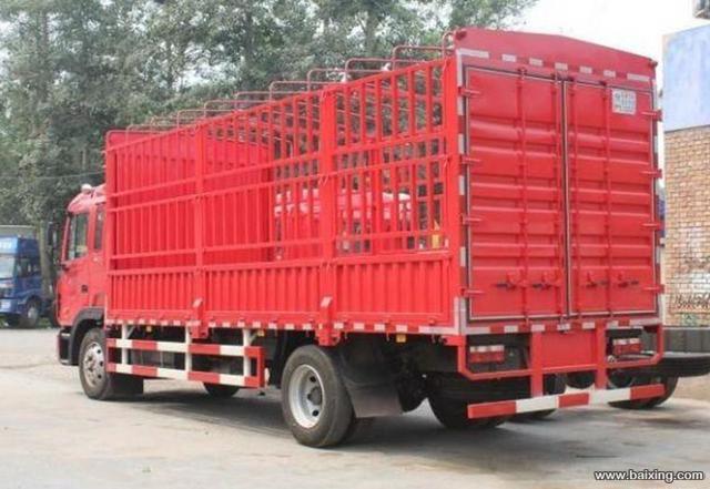此類車型如下圖所示,車廂外部尺寸長度為6.8米,根椐車的底盤結構來分類的話,這是一臺單橋車。可稱之為6.8米單橋。此車型的寬度一般為2.2-2.4米左右(出廠年份較早的車型相對窄一些,最近出廠的車型車廂相對寬一些)。車廂高度一般在2.2-2.7米之間。全封閉式的車廂,車廂頂上面也是封閉的,只留有后面可開門進行貨物裝卸。當然也有一些同類車型比較特別,為了裝卸貨物方便,會在車兩側的欄板上開一個門,在側面欄板上開的門,我們稱之為中門。如圖所示車型是沒有中門的。